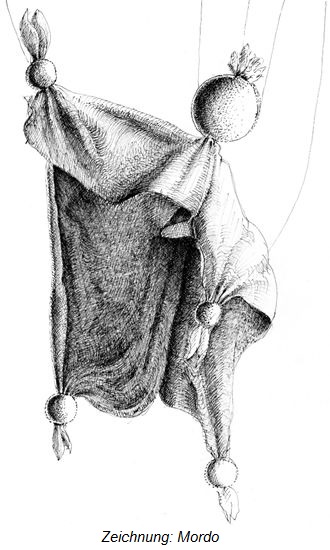 Beim Marionettenspiel folgt die Marionette dem Gesetz der Schwerkraft. Ihre "Sprache" ist die ihr eigene Bewegung, beseelt vom Spieler. Wir entdecken ihr zauberhaftes Eigenleben, ihre Magie. Balance, Harmonie, Spiel mit dem Gewicht, Freilassen der Bewegung, tänzerische Einheit von Spieler und Marionette, Partnerschaft, meditative Konzentration umreißen in Stichworten Eigenart und Möglichkeit.